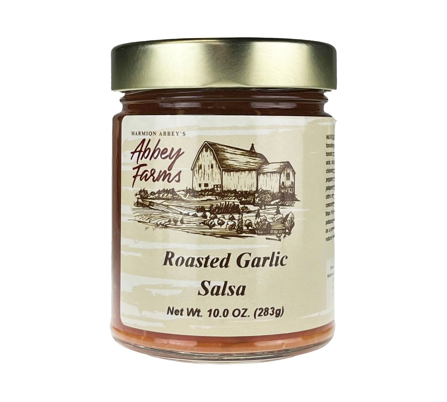Love garlic? Abbey Farms Roasted Garlic Salsa has a double-whammy with both fresh and slow-roasted garlic. Made with diced fresh tomatoes, green bell peppers and garlic. Jalapeno peppers add some heat while key lime juice brightens the flavor. This all-purpose salsa is great with tortilla chips or your favorite Mexican dish.