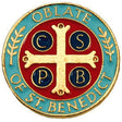 Oblate of St. Benedict lapel pin, gold plated with hand-enameled colors, 1" diameter, gift boxed.