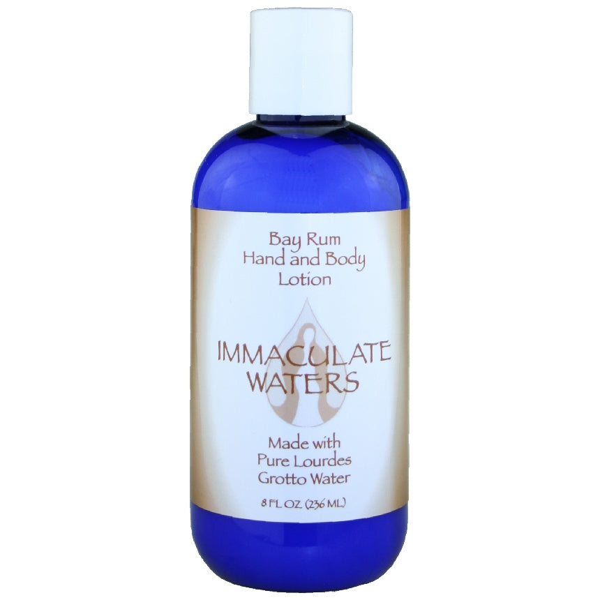 Bay Rum Hand and Body Lotion is a light, vanishing moisturizer with glycerin and natural oils that carries its scent for hours. Approximately 1/2 ounce of Lourdes Grotto water in each 8 fluid ounce bottle.