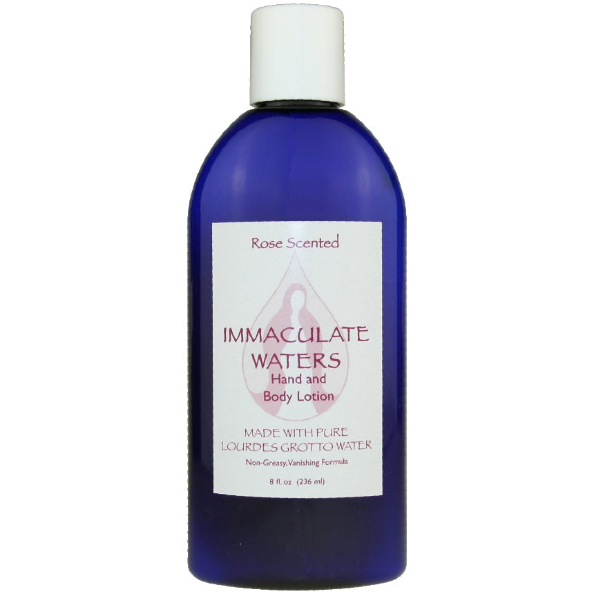 Rose-Scented Hand and Body Lotion is a light, vanishing moisturizer with glycerin and natural oils that carries its scent for hours. Approximately 1/2 ounce of Lourdes Grotto water in each 8 fluid ounce bottle.