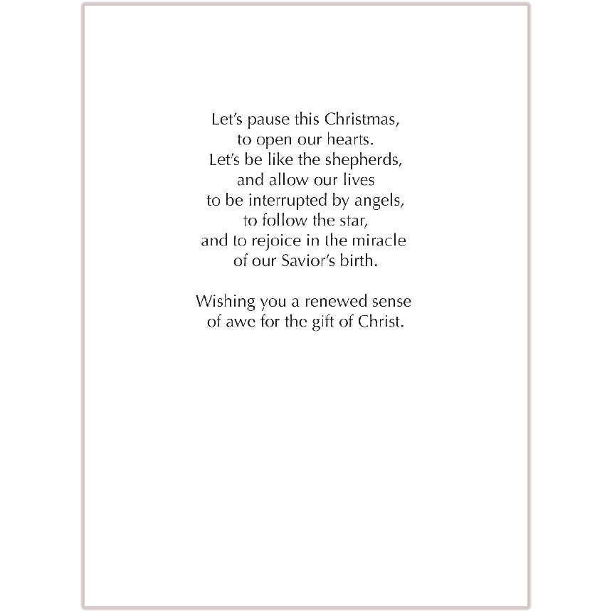 Inside text: "Let's pause this Christmas, to open our hearts. Let's be like the shepherds, and allow our lives to be interrupted by angels, to follow the star, and to rejoice in the miracle of our Savior's birth. Wishing you a renewed sense of awe for the gift of Christ."