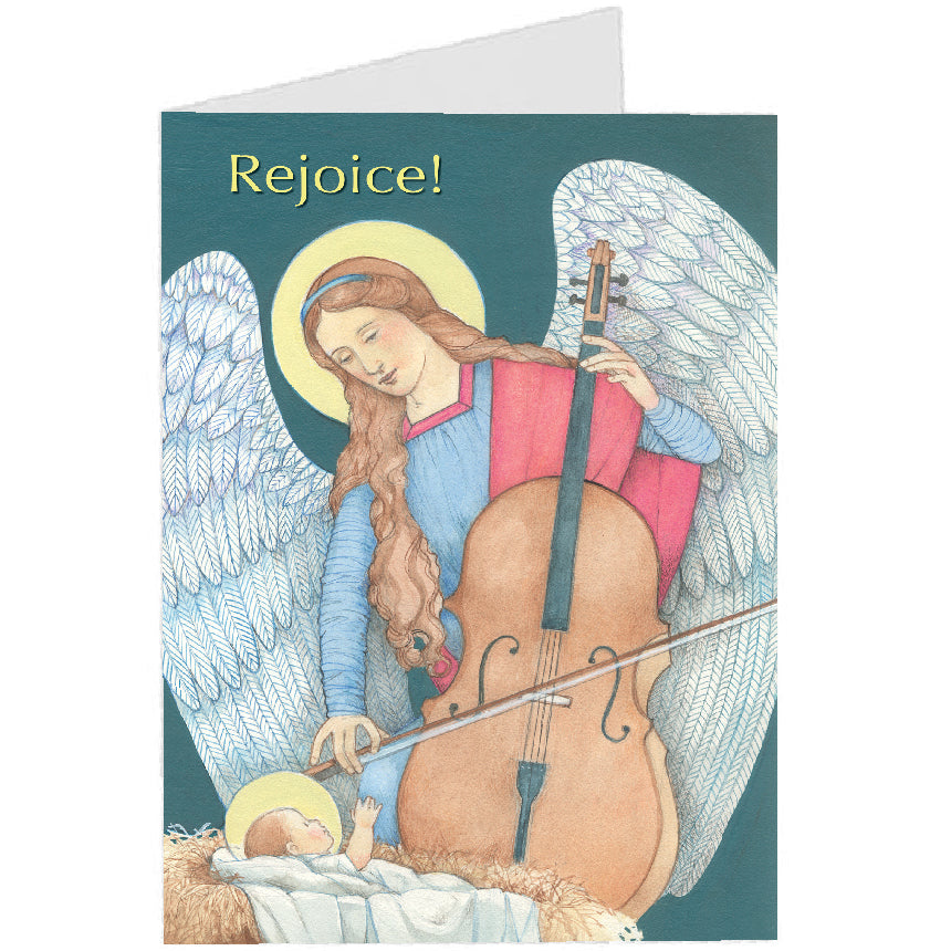 Angel playing a cello worshiping the Christ Child through her music.