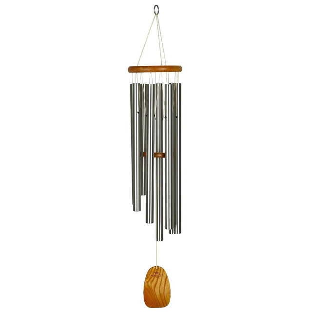 Inspired by the calm and reverence of chant, these chimes play notes tuned to a medieval scale. Tubes tuned to C, D, E flat, F, G, A, B flat and C echo Gregorian tones and harmonize with other Gregorian Chimes. Eight anodized silver aluminum tubes yield a rich tenor tone. Wood parts are handcrafted cherry. Total length 41".